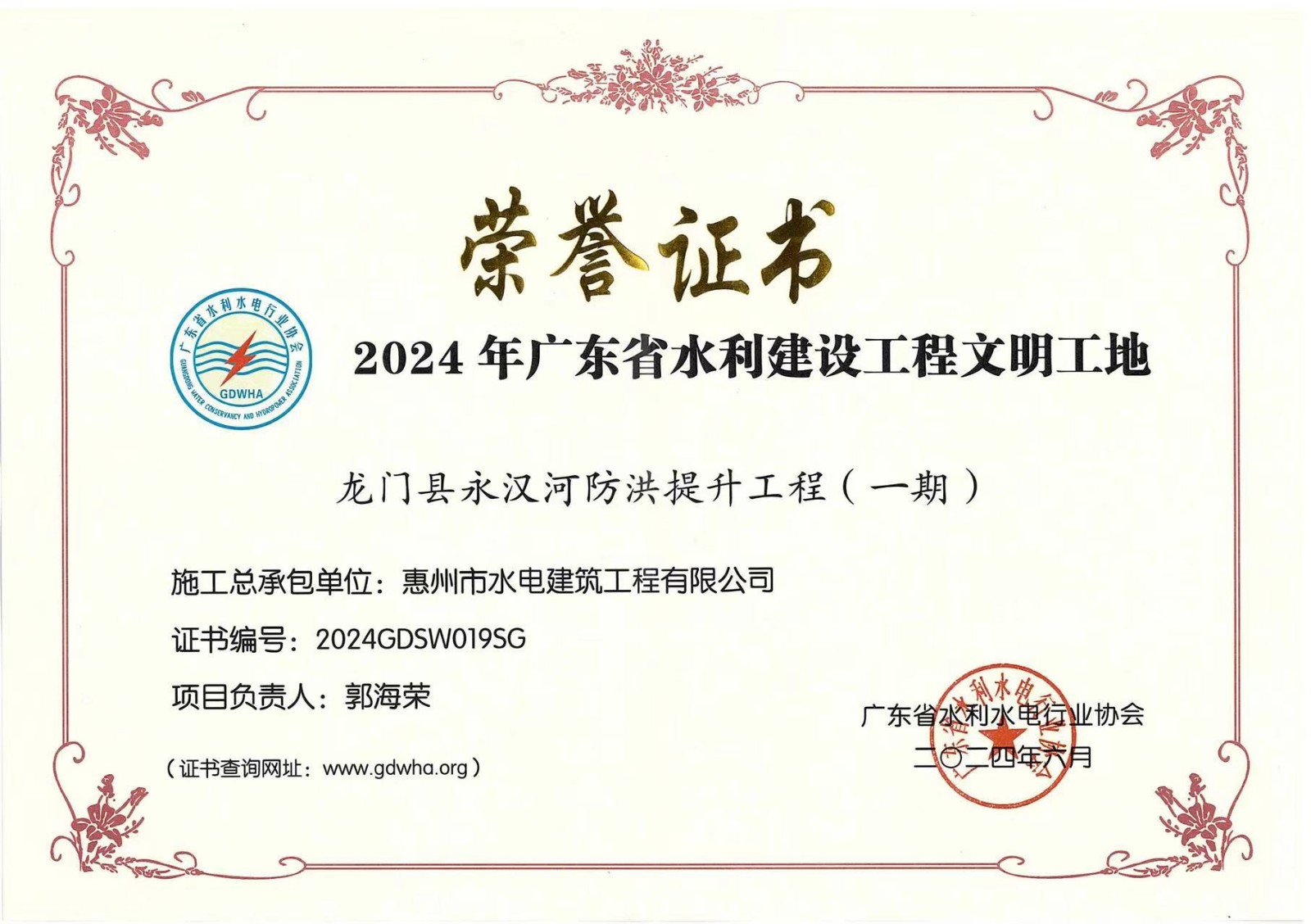 惠州市水电建筑工程有限公司成立于一九六四年四月,隶属惠州市水务集团有限公司,是一家国有综合性施工企业,主营水利水电工程、房屋建筑、市政工程等施工业务。公司拥有水利水电工程施工总承包一级、建筑工程施工总承包一级、市政公用工程施工总承包一级、公路工程施工总承包三级,公路路基、路面及建筑装修装饰专业承包二级,环保工程、机电安装、河湖整治、输变电工程专业承包三级等经营资质……