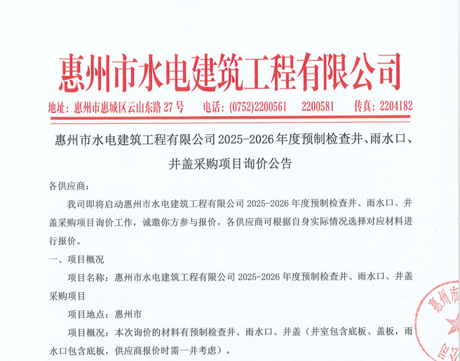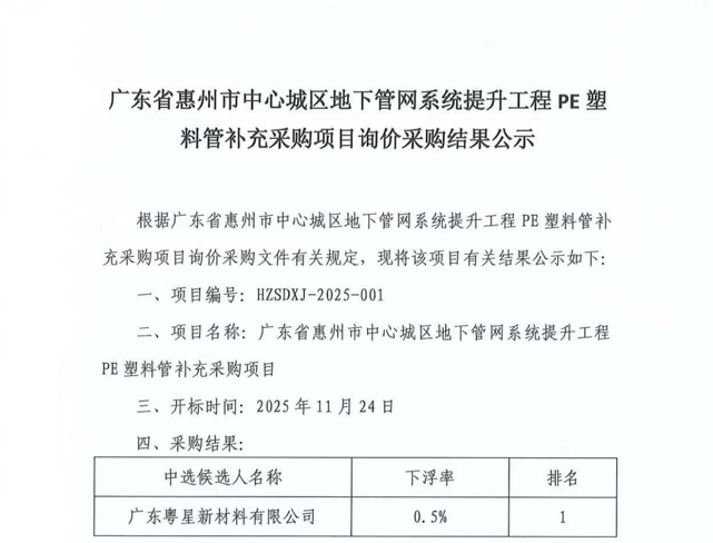 广东省惠州市中心城区地下管网系统提升工程PE塑料管补充采购项目询价采购结果公示……